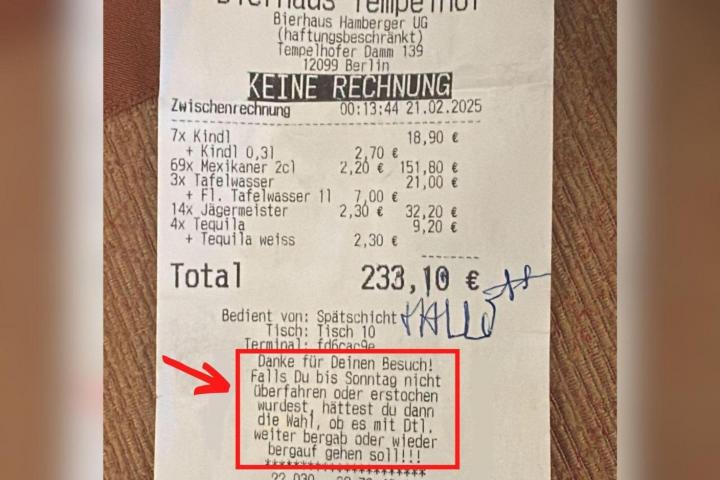 Va a un bar en Berlín y este es el mensaje que recibe impreso en el ticket: ver para creer
