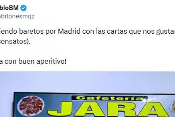 "Descubriendo baretos por Madrid con las cartas que nos gustan (y a precios sensatos). Y su caña con buen aperitivo!", ha afirmado el creador de contenido en un tuit que lleva ya más de 14.000 reproducciones.