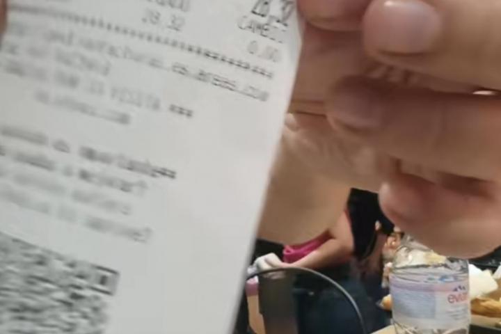 El aire acondicionado suelta agua y le han tirado un café al suelo y nadie lo ha recogido. El influencer, además, ha pedido un zumo de naranja de casi 5 euros que está "súper agrio", un mollete con la tortilla congelada a 7,85 euros que está "infumable" y un bocata de jamón por 8,75 con el "pan chicloso".
