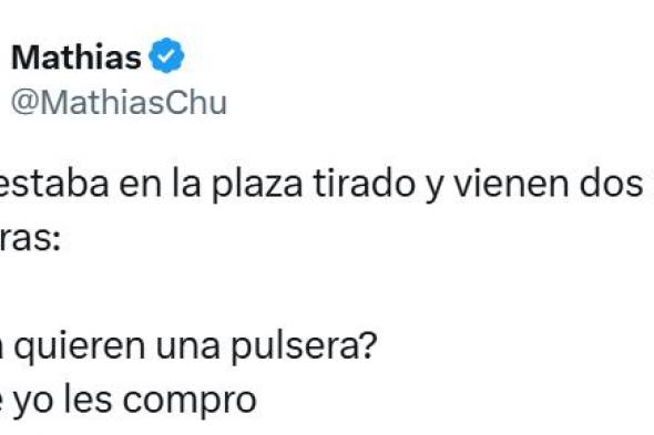 "Ayer estaba en la plaza tirado y vienen dos nenas a vender pulseras: -Hola, ¿quieren una pulsera? -Dale, yo les compro", ha comenzado contando el usuario, rememorando la escena.