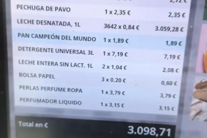 Lo que uno no espera es llegar a Lidl y que a la hora de pagar el montante ascienda a nada más y nada menos que 3.098 euros. Lo alucinante es que todo parece un error del cajero a la hora de marcar la leche.