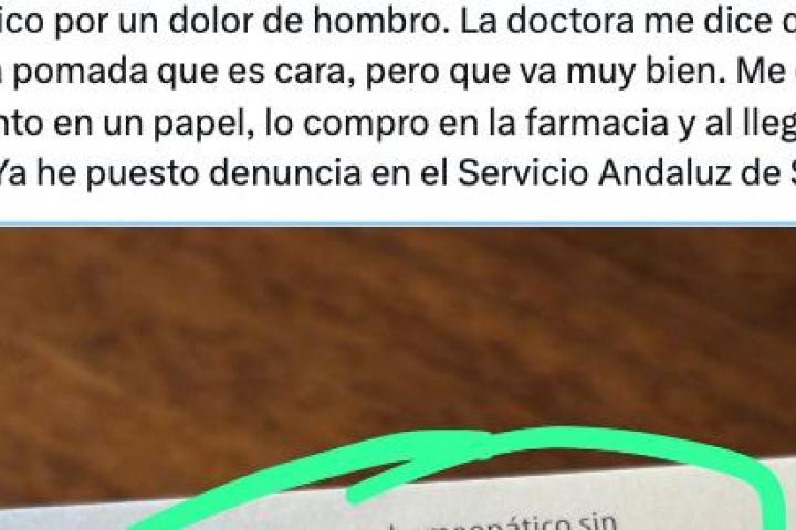 Y ha proseguido para finalizar: "Me da el medicamento en un papel, lo compro en la farmacia y al llegar a casa ¡sorpresa! Ya he puesto denuncia en el Servicio Andaluz de Salud".