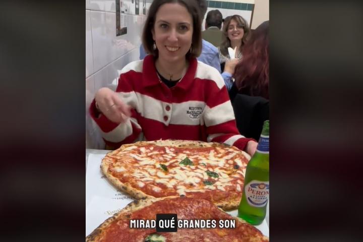 "Yo me pedí la Margarita, que es la que más fama tiene. ¡Mirad qué grandes son! Y os aseguro que estaba buenísima", afirma mostrando a cámara el desmesurado tamaño del plato.