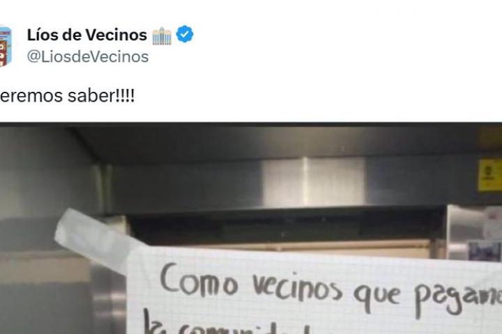 La popular cuenta de X Líos de vecinos, especializada en difundir "líos, broncas y curiosidades de comunidades de vecinos" de toda España, ha publicado una imagen de un cartel que han colgado en un ascensor.