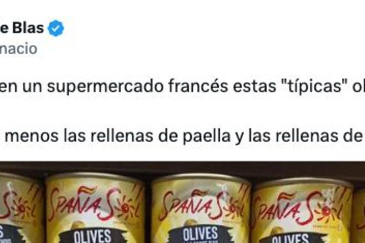 "Acabo de ver en un supermercado francés estas 'típicas' olivas rellenas españolas. He echado de menos las rellenas de paella y las rellenas de fabada 😅", ha afirmado el experto junto a una imagen de los sabores que ha visto.