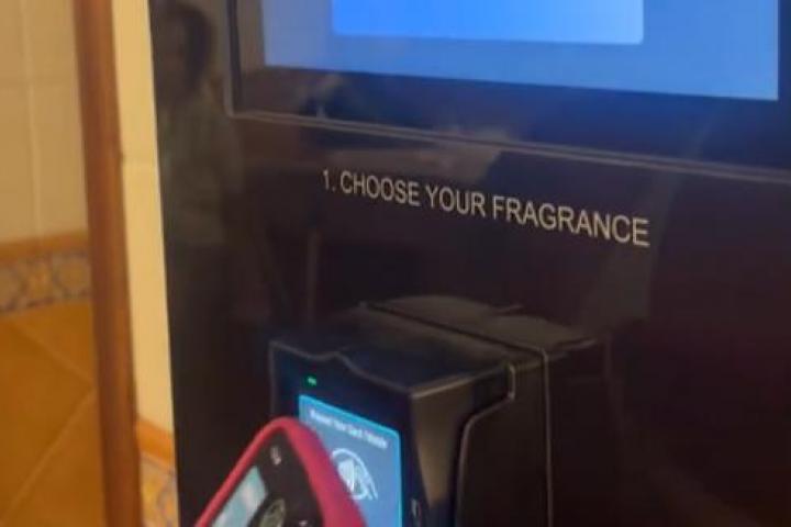 En concreto, la chica, grabada por su amiga, se encuentra delante de una máquina dispensadora en la que se puede elegir marca de perfume a través de una pantallita para luego pagar tres euros y que la máquina dispense una pulverización del perfume.