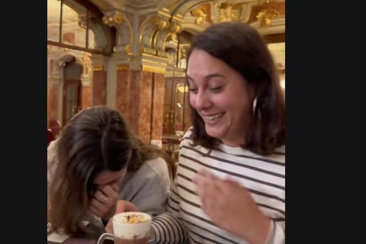 "Uy qué bien vamos a desayunar, es que estoy llorando. Menos mal que nos han puesto un poquito (un vaso de chupito) de agua para pasar la galleta", ha expresado una de las amigas. El café llevaba virutas de oro comestible, por lo que han deducido que el alto precio puede venir de ahí, además de estar en la misma cafetería.