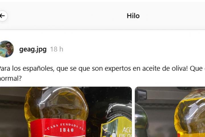 "Para los españoles, que se que son expertos en aceite de oliva! ¿Qué es ese sedimento? ¿Es normal?", pregunta en la red social Threads.