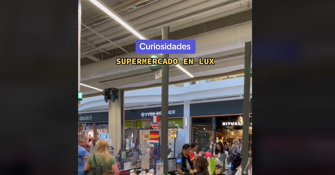 "Esta es una cosa súper curiosa del supermercado Alcampo de Luxemburgo y es que cada caja tiene unas banderitas que indican el idioma que habla la persona que está trabajando", señala mientras muestra ese detalle en imágenes.