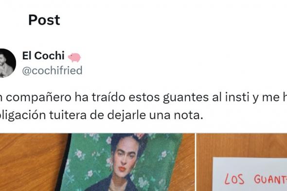 "Un compañero ha traído estos guantes al insti y me he visto en la obligación tuitera de dejarle una nota", ha asegurado en la publicación.