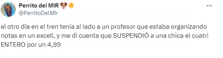 "Me di cuenta que suspendió a una chica el cuatrimestre entero por un 4,99", ha escrito con un tono indignado, ya que le pareció injusto suspender el curso entero por una centésima.
