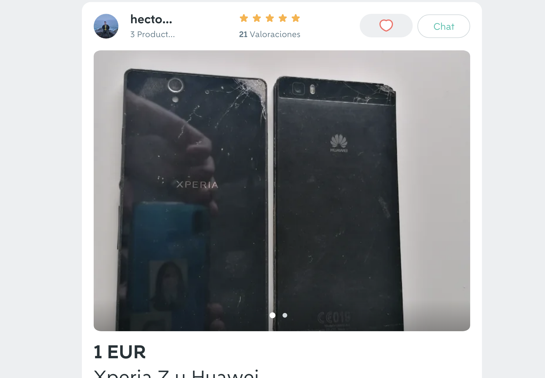 En las últimas horas, ha publicado la oferta que hizo un usuario de Wallapop, que vende por un euro tanto un móvil Xperia Z como un Huawei que no funcionan: "Estos dos teléfonos no funcionan, ninguno de los dos, y su apariencia es horrible, pero los vendo por dos razones".