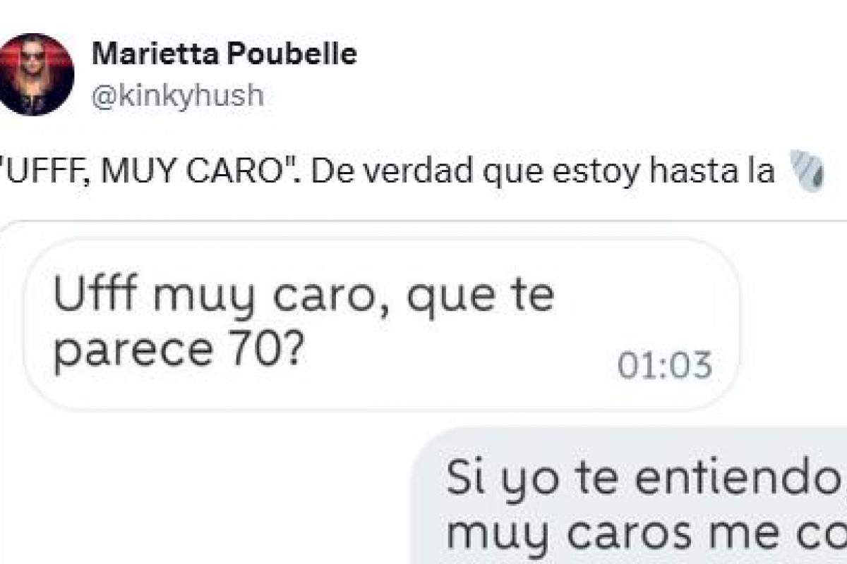 Tras estos mensajes, Marietta decidió compartir el pantallazo de uno que le había llegado en el que le decían "uuf muy caro, ¿qué te parece 70 euros". La reacción que tuvo fue muy contundente.
