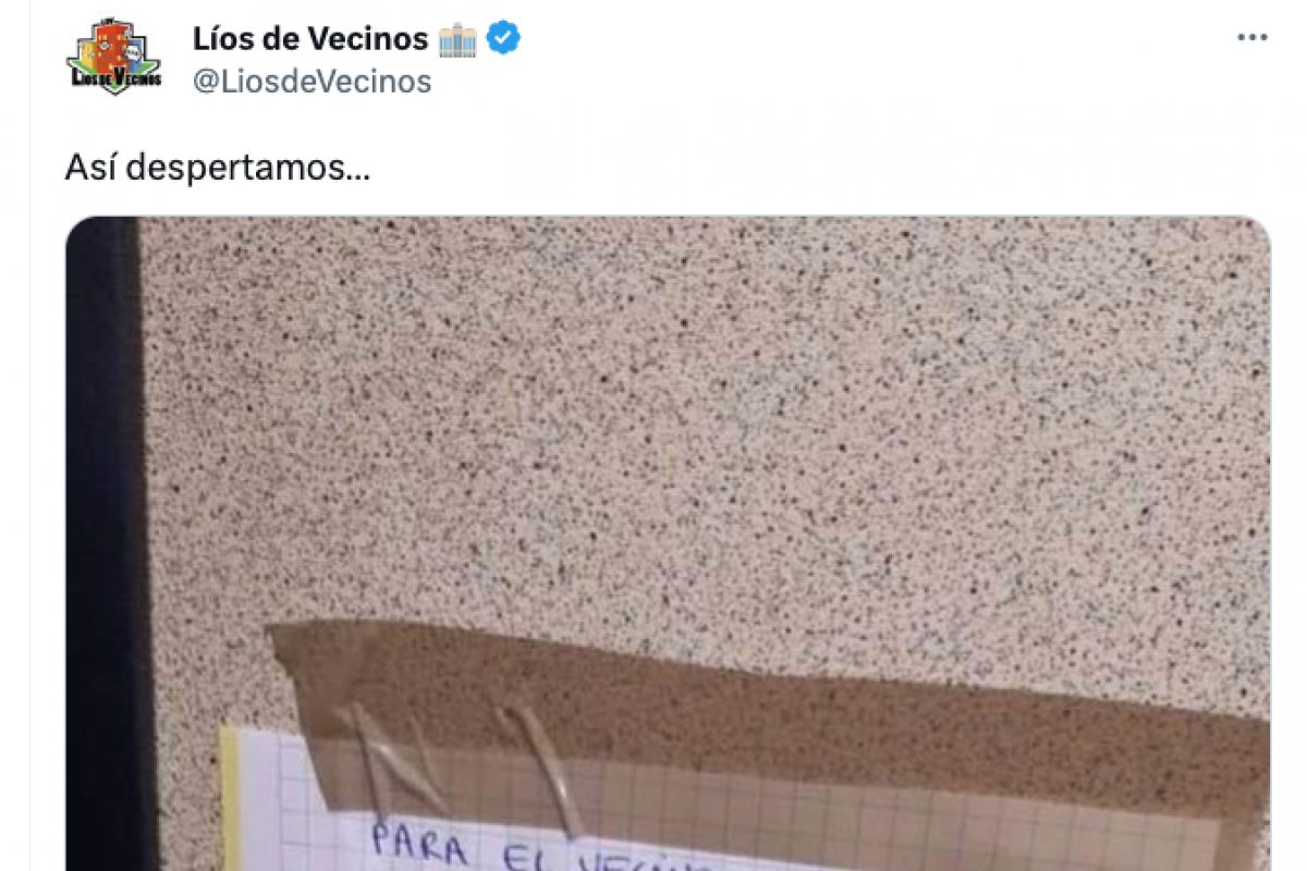 Y en ese contexto se enmarca un cartel que un vecino dejó a otro en el portal y que está arrasando en Twitter después de que lo haya subido a esa red social la popular cuenta @LiosdeVecinos.
