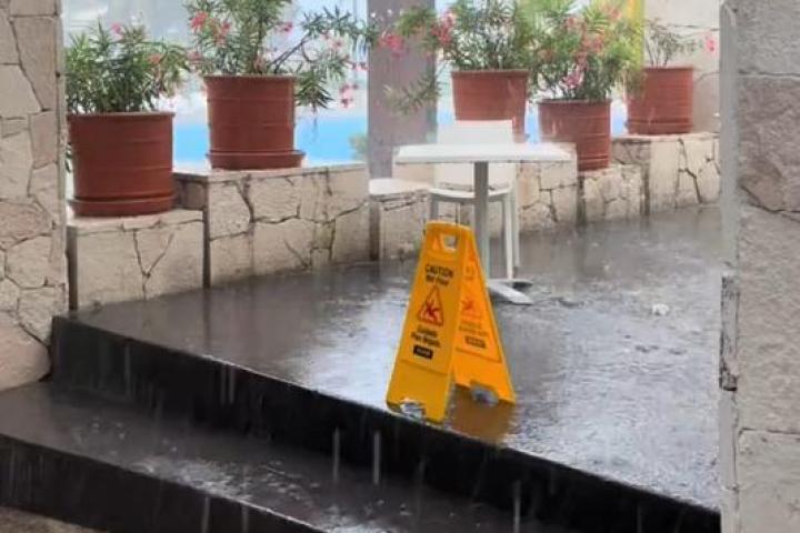 "POV: vas a Cancún a broncearte en pleno enero", ha manifestado la usuaria al principio del vídeo, en el que se puede ver una fuerte tormenta con una lluvia que inunda todo el suelo del hotel.