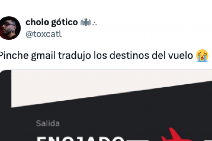 "Pinche gmail tradujo los destinos del vuelo 😭", ha escrito el tuitero junto al a imagen de la traducción. Además, ha bromeado en otro mensaje en el que decía que ya había llegado a Jamón.