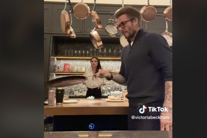 La diseñadora de moda Victoria Beckham, mujer del exfutbolista David Beckham, ha publicado un vídeo de su marido intentando darle vueltas a una tortita desde una especie de sartén. Aunque las primeras veces lo hace bien, al final el producto termina fuera de su sitio.