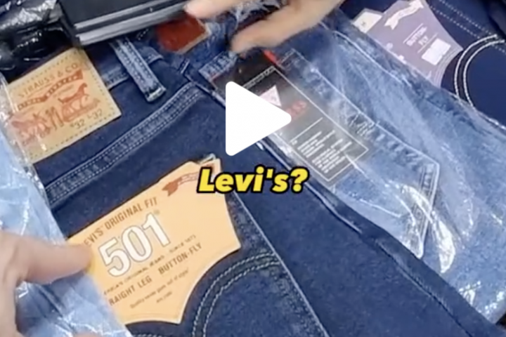 El creador de contenido va primero a un "puestecillo" donde venden ropa de la marca Levi's. Él pregunta si son originales y la mujer que le atiende dice que son "hechos en Vietnam".