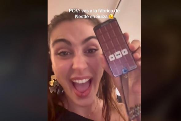 "Suiza es el país que más consume chocolate del mundo", ha explicado al principio del vídeo, según lo que le estaba relatando una tableta de chocolate con un audio incorporado. También ha enseñado que tenían un expositor de frutos secos como almendras, además de multitud de probadores de todo tipo de chocolates.