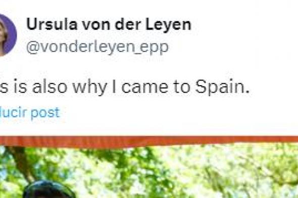 La actual presidenta de la Comisión Europea y candidata del PP europeo a las elecciones europeas del 9 de junio, Ursula Von der Leyen, ha triunfado en las redes sociales después de publicar en X, antes conocida como Twitter, una imagen en la que expresa "una de las razones por las que también ha venido a España" y es una auténtica maravilla.