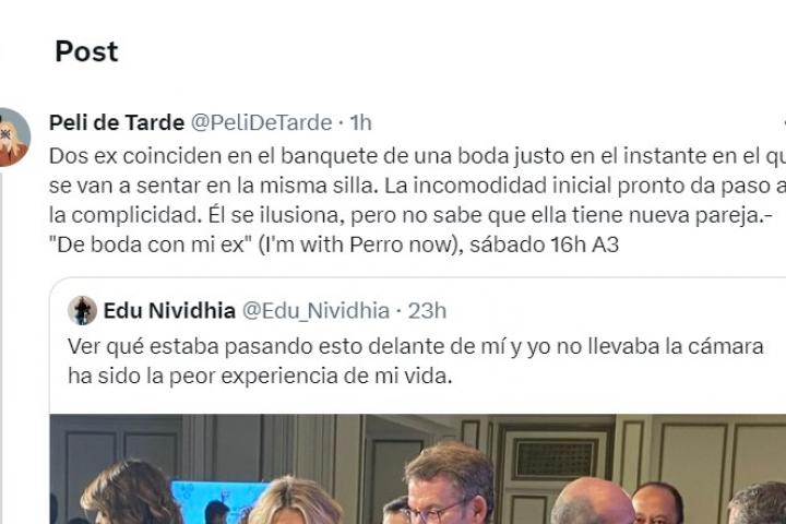 La popular cuenta de X, la red social antes conocida como Twitter, @PeliDeTarde ha tomado esa instantánea y ha publicado un desenfadado mensaje, muy en su estilo.