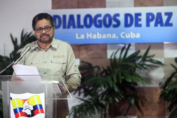 Foto del segundo jefe de las FARC y líder de los delegados de la guerrilla Luciano Marín, alias Iván Márquez, en La Habana. EFE/Ernesto Mastrascusa