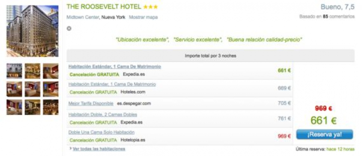 Respecto a los hoteles, pasa exactamente lo mismo. Pese a la presión que tienen por parte de las grandes páginas de reservas online para garantizar el precio mínimo a cada una de ellas, lo cierto es que hoy en día existe mucha diferencia en el precio que puedes encontrar en uno u otro sitio. Para ello, lo mejor es utilizar algún comprador de hoteles como Exprimehoteles o Trivago. Con estas herramientas podrás ver el precio mínimo que ofrece cada una de webs en un único lugar.